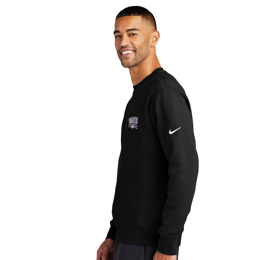 Lightweight with a brushed back, this crew feel extra soft on the inside and smooth on the outside. Design details include rib knit collar, cuffs and hem. A contrast Swoosh logo is embroidered on left sleeve. Made of 8.3-ounce, 80/20 cotton/polyester.
