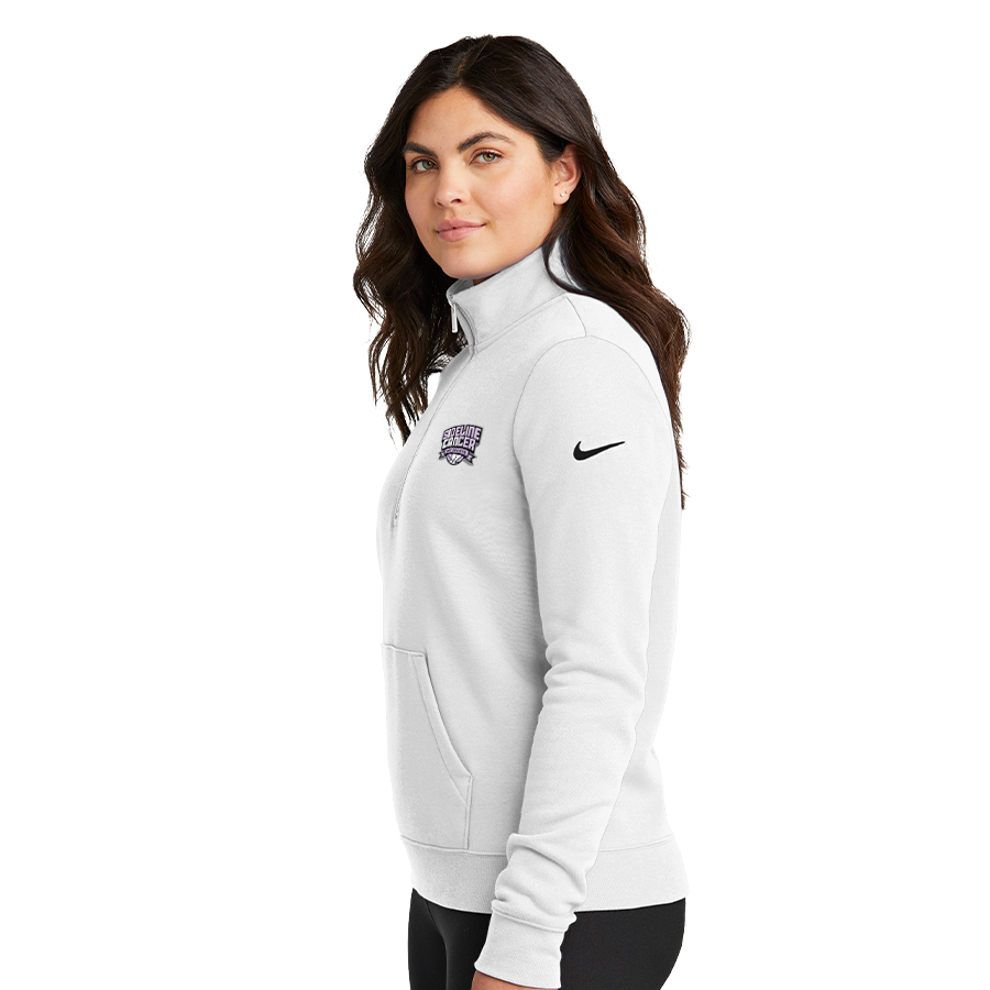 Built with versatility in mind, this brushed-back 1/2-zip has an elevated look which makes it perfect for work or play. Design details include a zip-through collar with dyed-to-match zipper. Front pouch pocket. Rib knit cuffs and hem. A contrast Swoosh logo is embroidered on left sleeve. Made of 8.3-ounce, 80/20 cotton/polyester.